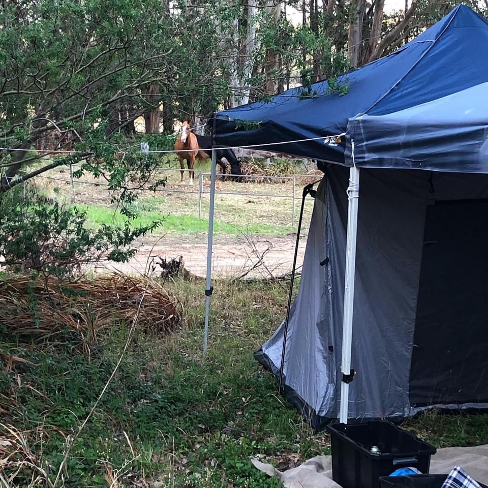 We had a friendly host at deepdene agistment and training, this property is set up as a HIP camp which is like an air bnb for campers where people with suitable properties open up their space to host campers. HIP camps can vary with facilities and deepdene is well set up with rustic toilets, showers and camp kitchen under the peppermint trees.