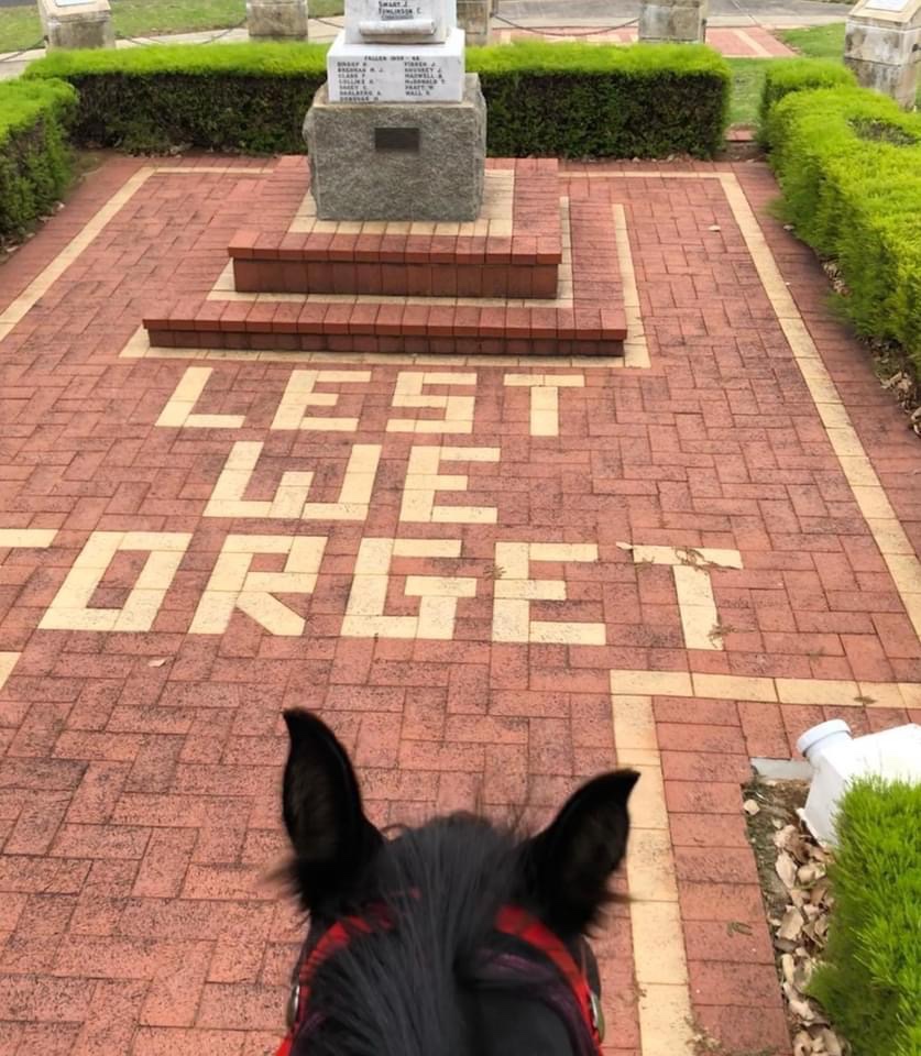 As part of our travels we like to visit the local war memorial, Sandy and I both take part in honouring the light horse troops and the Waler horse breed at local Anzac Day parade and other ceremonies.