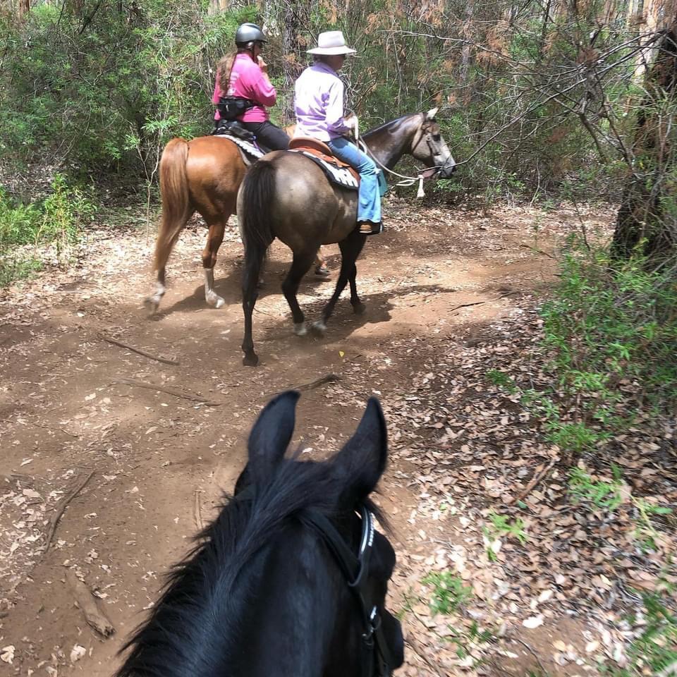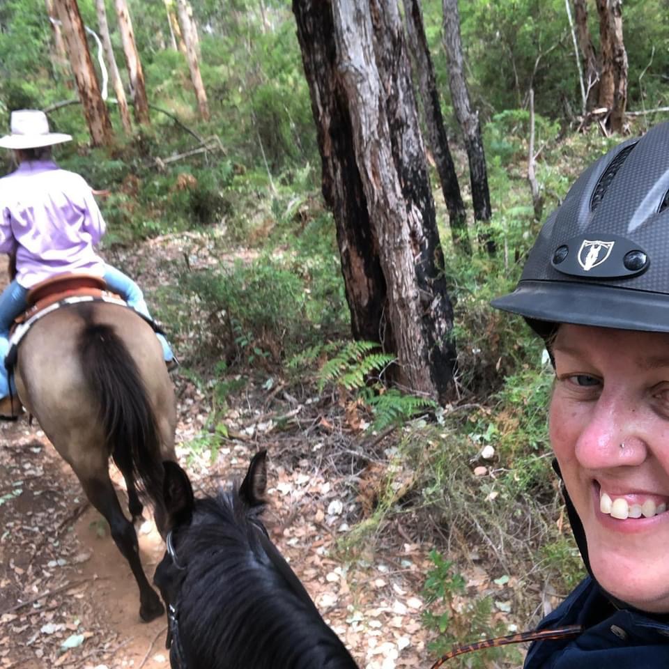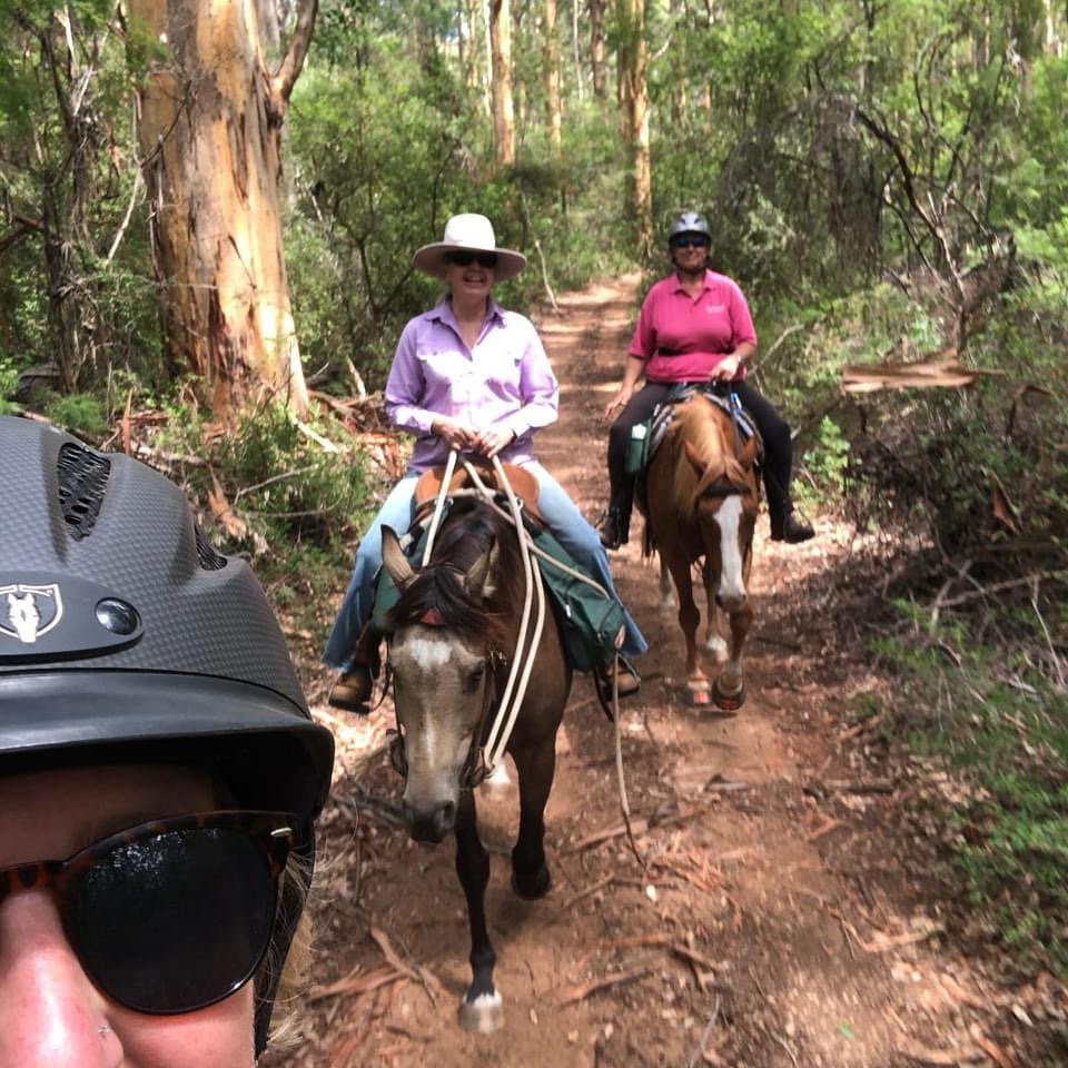 Sandy and I had weary horses and back fat but enjoyed the Karri Forrest this is a brilliant location for a ride. We were glad to share our stories from the past few days adventures with Jane.